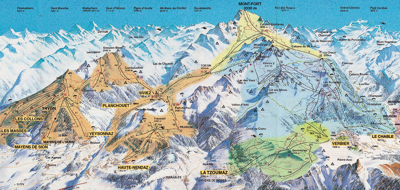 Pistenplan 4 Vallees Verbier La Tzoumaz Nendaz Veysonnaz Thyon