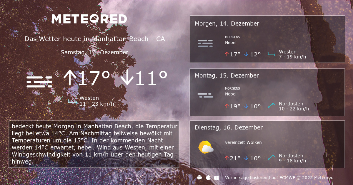 Das Wetter in Manhattan Beach - CA - Wettervorhersage fr 14 Tage.