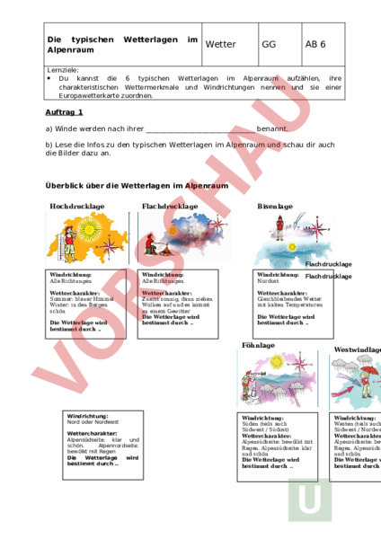 Arbeitsblatt Wetterlagen Im Alpenraum Geographie Schweiz